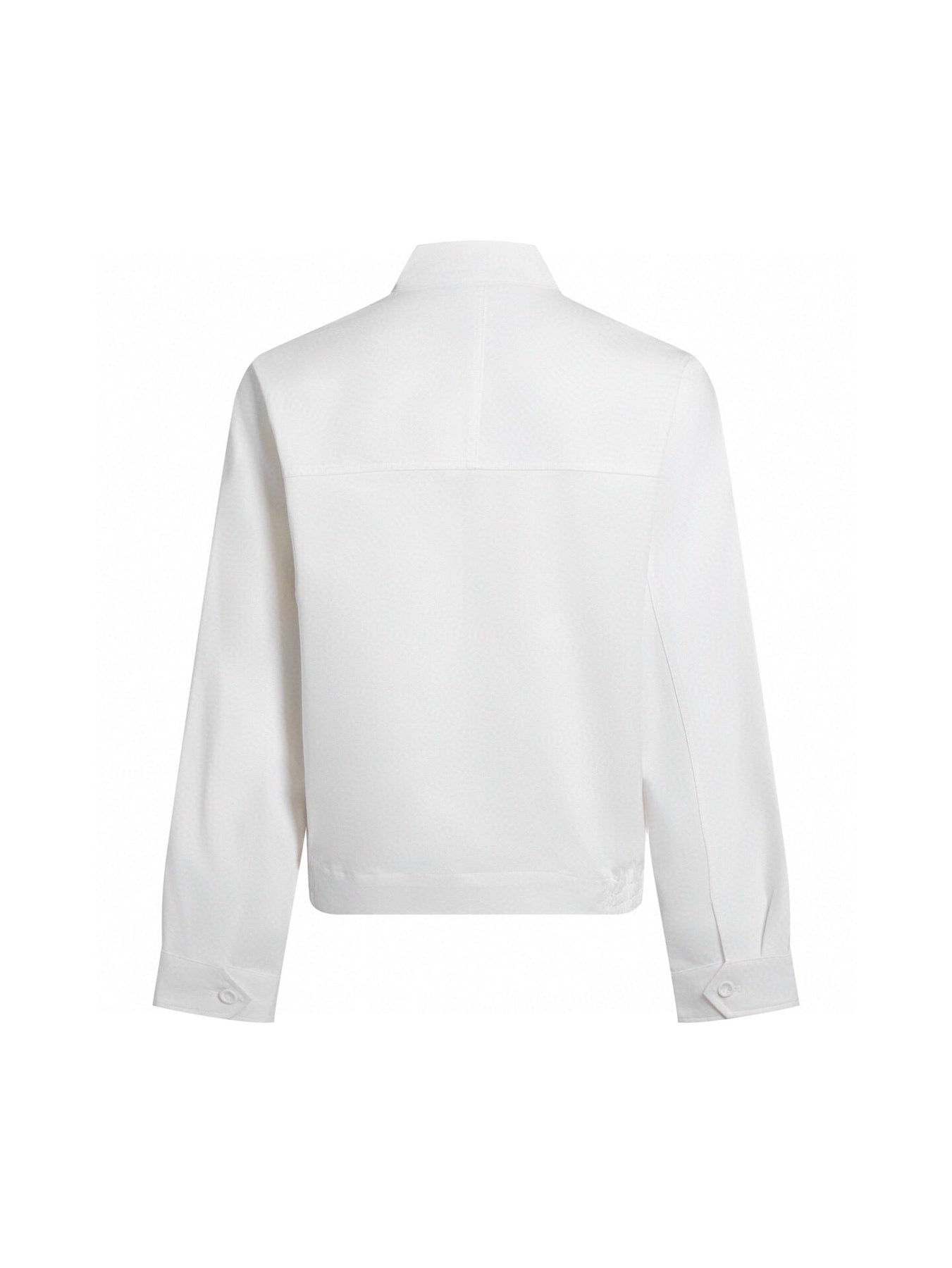 A clean white flight jacket crafted with a sleek, structured silhouette and subtle Christian Dior detailing. Designed with a full-zip closure and minimalist finish, this piece delivers modern luxury with a sharp, elevated edge—perfect for statement outerwear year-round.